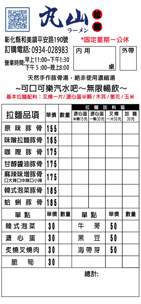 2024最新在地推薦餐廳的菜單_丸山拉麵的菜單、圖片