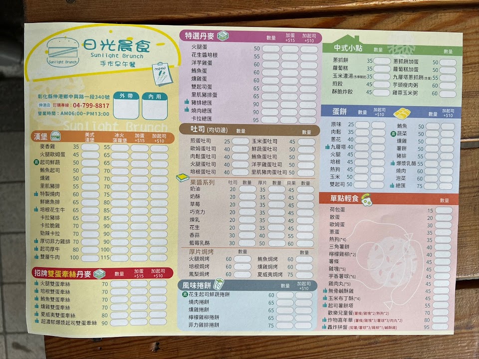 2024最新在地推薦餐廳的菜單_日光晨食手作早午餐的菜單、圖片