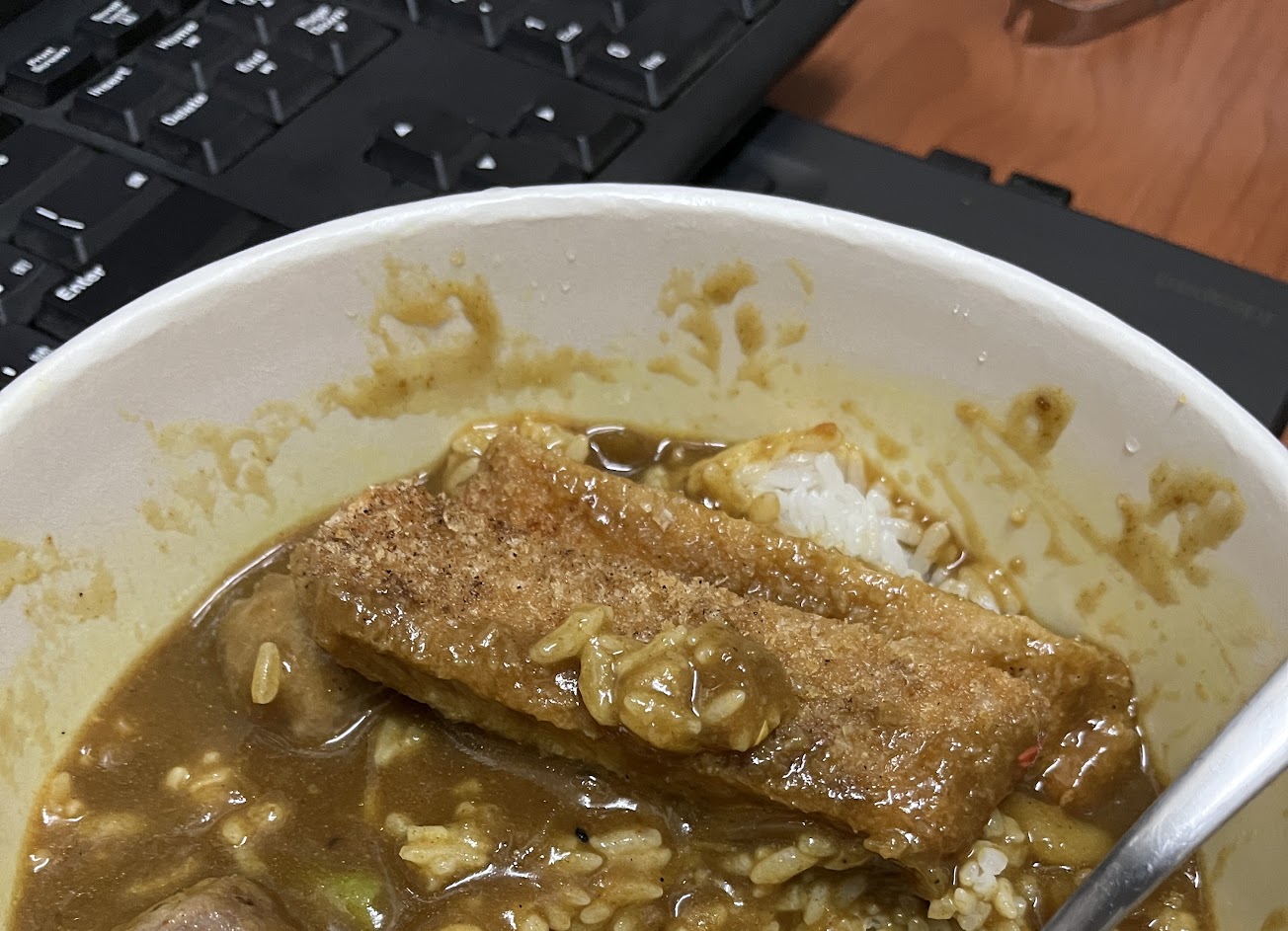 咖喱濃郁香醇,醬的份量也給的十足,重點便宜大碗,白飯還可以一直加,老闆太佛心了!除了份量,味道也是非常好吃,咖喱感覺有加入水果,馬鈴薯跟紅蘿蔔都燉得很綿密,推薦來吃。