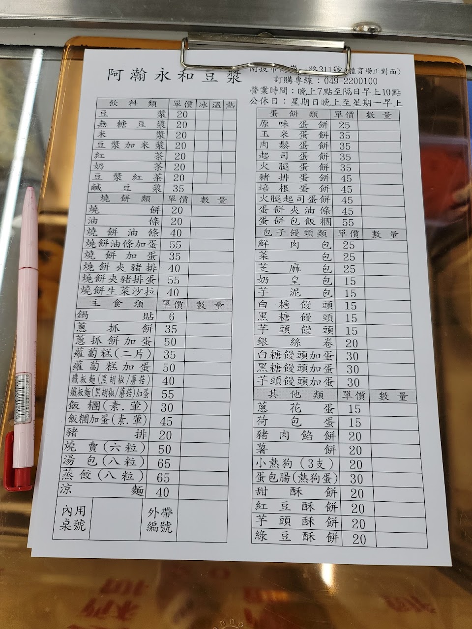 2024最新在地推薦餐廳的菜單_阿瀚永和豆漿的菜單、圖片