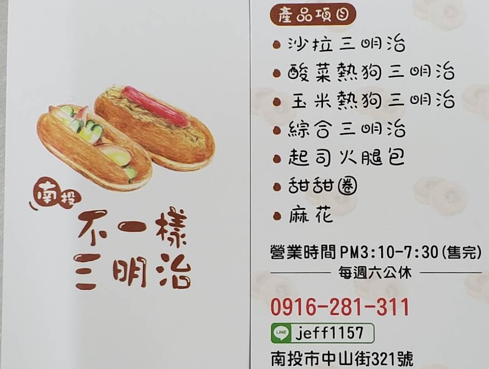 2024最新在地推薦餐廳的菜單_不一樣三明治攤販的菜單、圖片
