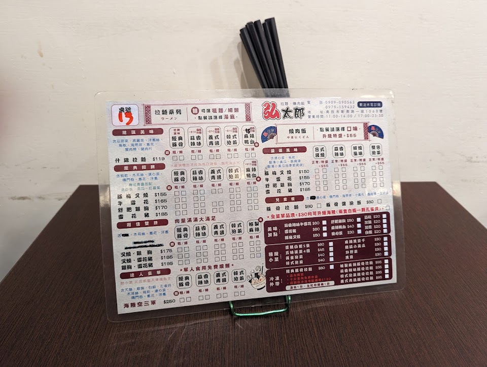 老闆有龜毛應該比日本人還龜毛 所以湯頭非常用心好喝 麵體也非常順口 只可惜…湯有點少想叫老闆娘加湯 確不敢…畢竟好喝的湯頭也要花不少成本 從桃園到南投玩就來吃過兩次了 兩次都有外帶調理包回家 這次更買了10份 真心覺得價格對得起美味 一蘭吃品牌 個人覺得弘太郎比較美味