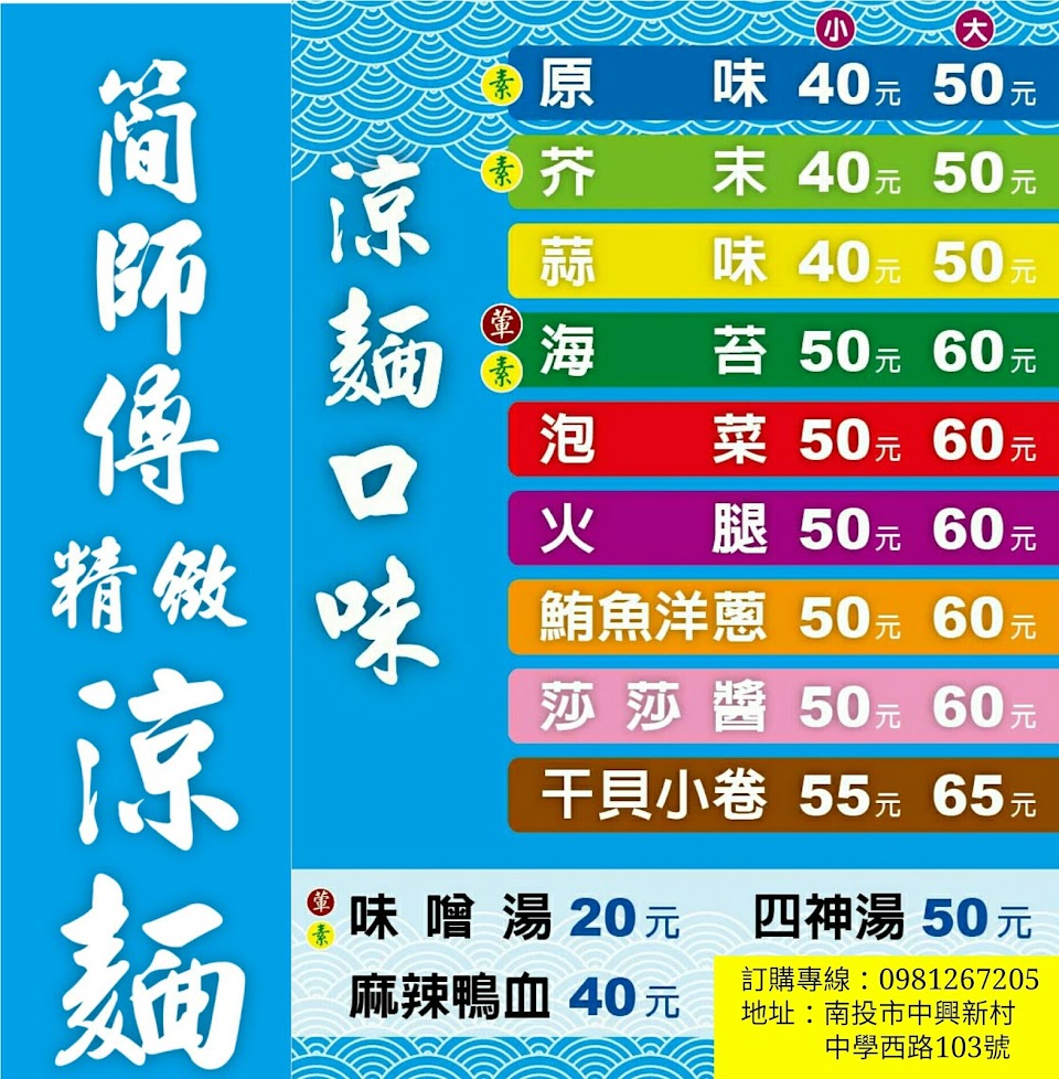 2024最新在地推薦餐廳的菜單_簡師傅精緻涼麵的菜單、圖片