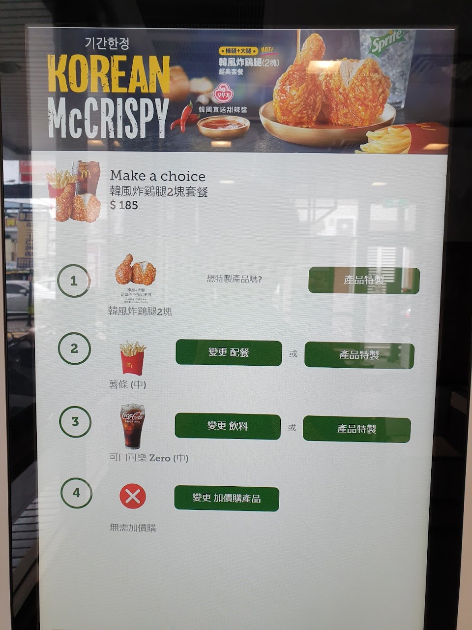 麥脆雞套餐現在沒有原辣混合口味可以選擇,很爛。