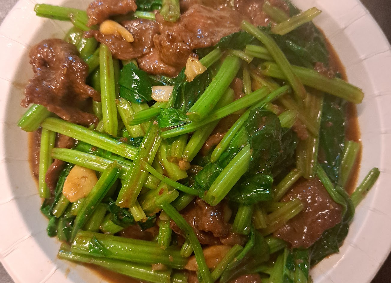 送來炒飯,還會立刻再送2個小碗來,送上湯的時候也是! 再補上兩個小碗~雖然都是紙碗跟免洗筷,不過在這種地方的熱炒店還有他的價位,我們覺得是可以接受的! 至少環境跟桌子是乾淨整潔~服務態度也很好,就是兩個人,一人主要都在廚房,一人內外場跑(我們猜是兄弟?!
