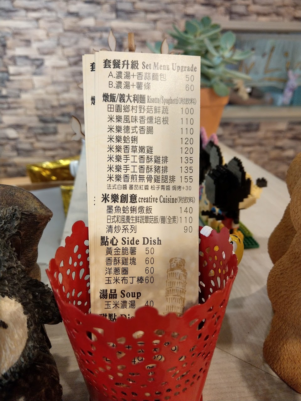 米樂也是 婦幼安全的用餐 餐廳 服務小姐送餐 招呼的時候非常熱情親切 互動也非常熱烈可以感受出來來往往的客人都是熟客比較多。即使第一次來也可以感受到 客人店家的親切 目前雖然大環境不好店家依然堅持採用熟悉的安全的食材在地的食材提供消費者最高的享受。