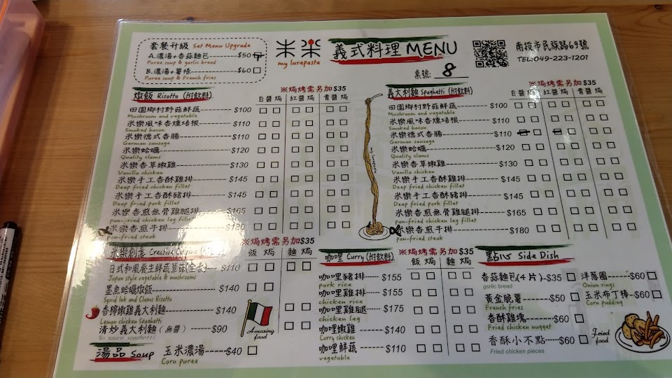 服務非常親切熱情的店家 進店裡 就感受到親切的招呼 服務人員馬上把桌子整理得乾乾淨淨還用消毒水消毒 擦乾淨 注重衛生安全。 餐點真材實料價格也是很便宜,以義大利餐來講這樣的內容是很便宜 空間的佈置非常明亮清爽 位置之間還蠻寬廣不會覺得擁擠 ,搭配卡通多多龍 營造出親子 喜愛的用餐環。 米樂也是 婦幼安全的用餐 餐廳 服務小姐送餐 招呼的時候非常熱情親切 互動也非常熱烈可以感受出來來往往的客人都是熟客比較多。即使第一次來也可以感受到 客人店家的親切 目前雖然大環境不好店家依然堅持採用熟悉的安全的食材在地的食材提供消費者最高的享受。