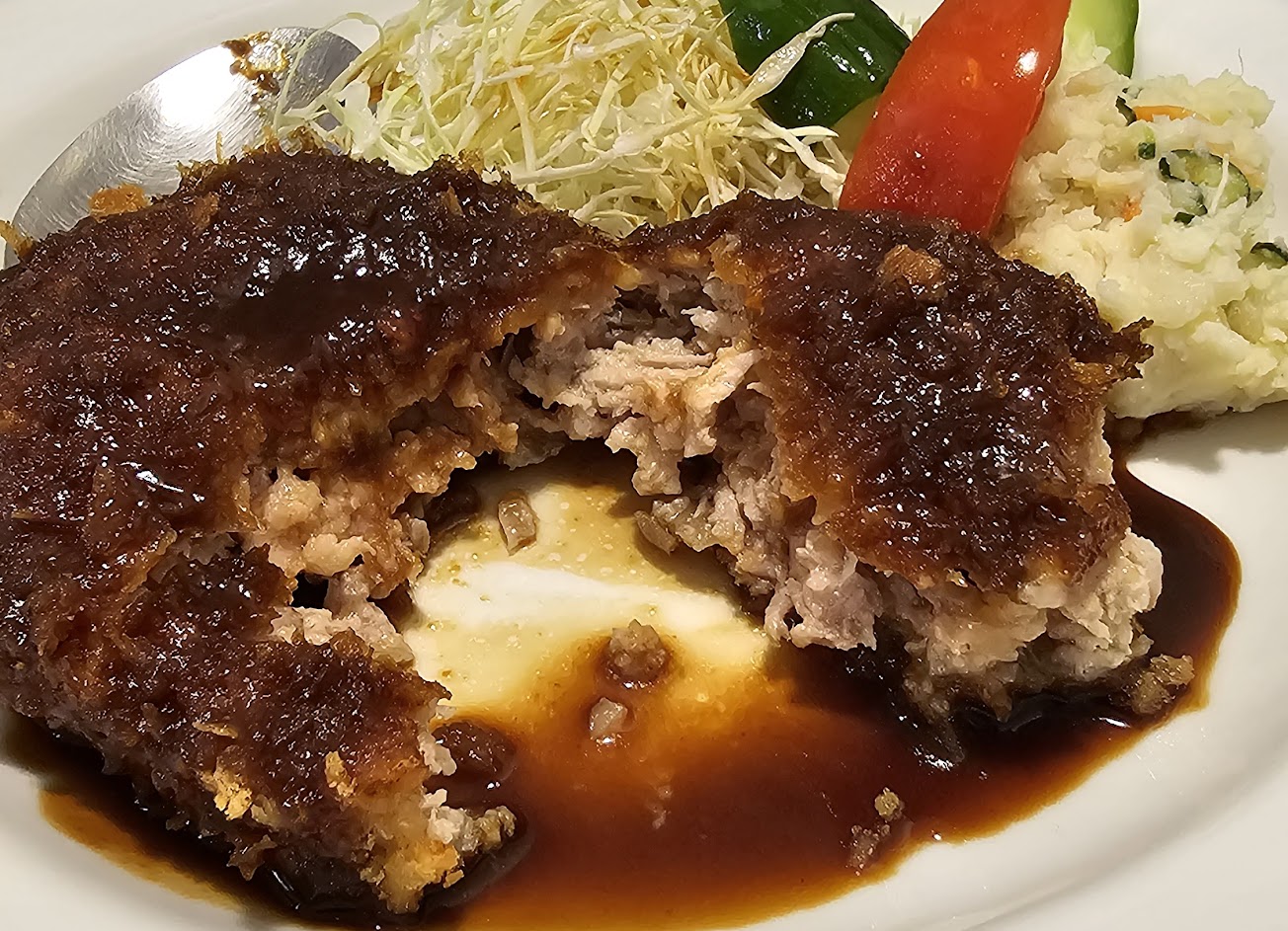 驚人的炸漢堡排,肉質不錯,炸的也剛好