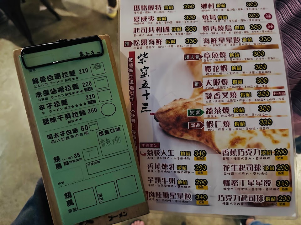好吃但價格都偏高,超級超級愛他們燒鳥跟肉桂星星糖披薩了???磨蒜器在外面比較看不到的小器具,建議先訂位(網路電話都行)抵達後先去劃位會給菜單,點好後先結帳,會給號碼牌等叫號入座。建議披薩等拉麵快吃完1/2,就拿號碼牌去等因為會很久很久很久,手工現作披薩比較耗時耗功夫?
