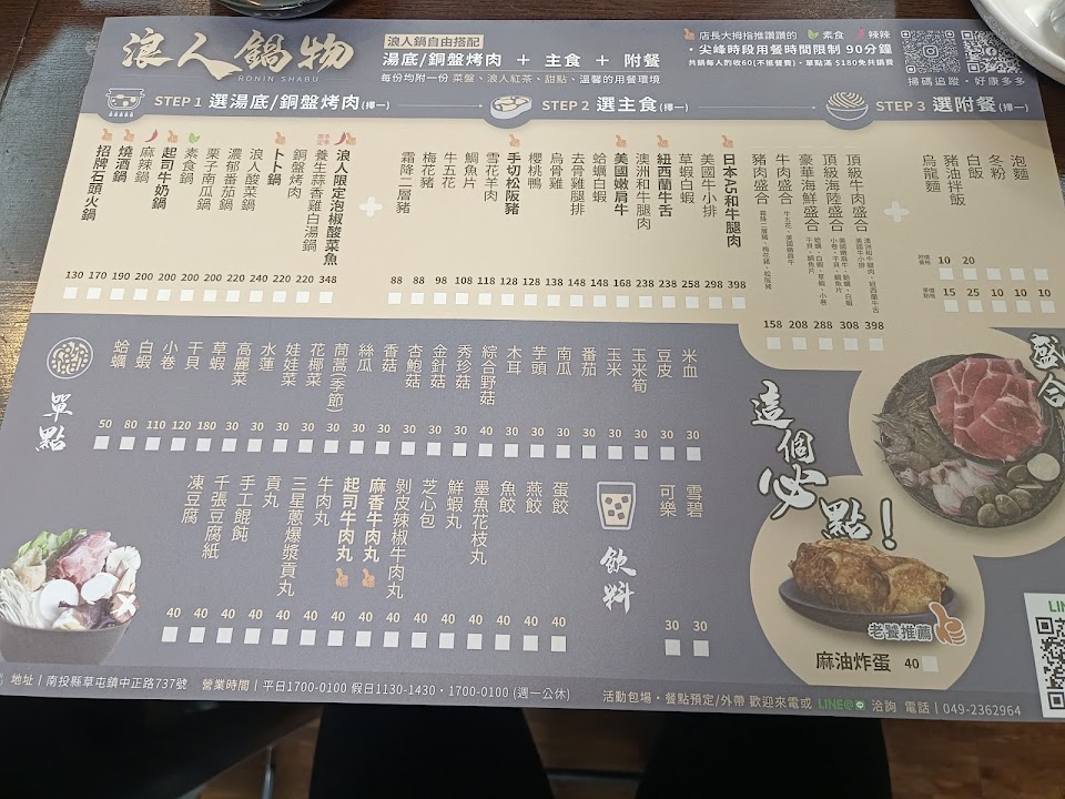 2024最新在地推薦餐廳的菜單_浪人鍋物的菜單、圖片