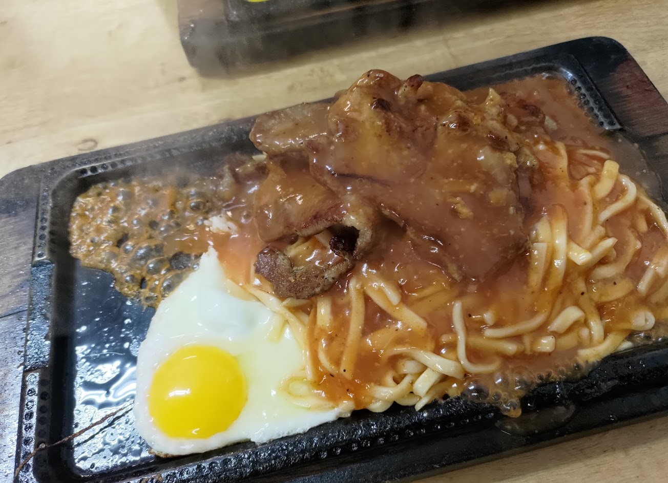 雞排狠好吃!背面煎得很香,牛排比起夜市牛排好吃多了,麵條醬料很好吃~我習慣再加番茄醬,酸酸的更有味道,下次還想吃看看豬排( ´▽`)