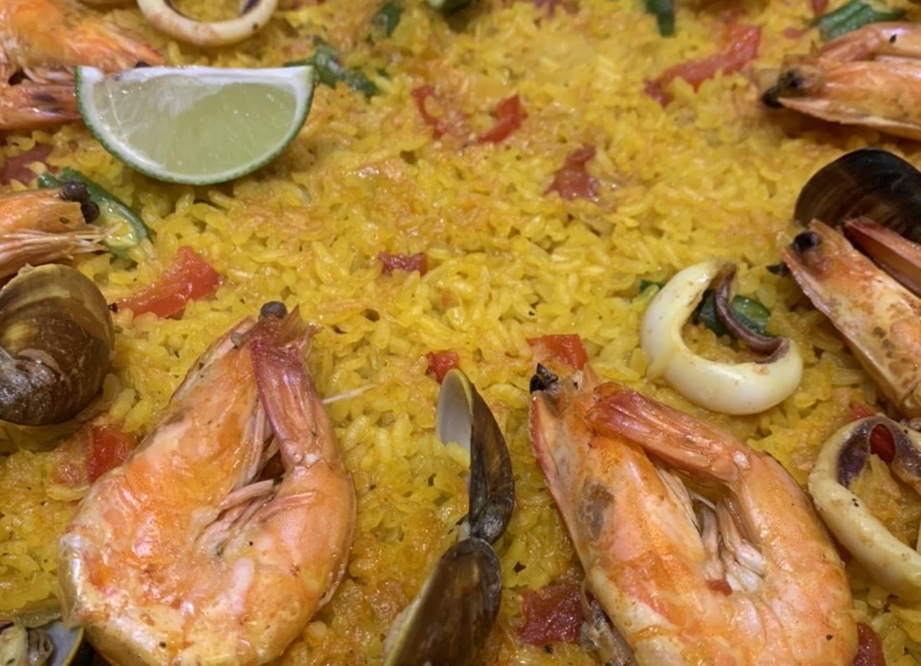 點餐海鮮燉飯,老闆娘會提醒:西班牙燉飯和義大利燉飯不同,西班牙燉飯偏乾偏硬,因為在西班牙吃過的燉飯口感不一,不見得都是偏乾偏硬,也有軟爛口感,但是自己就是偏愛偏硬口感的人,所以偏硬很可以,但是偏乾這點就見仁見智,加上檸檬汁之後的清香是覺得還可以接受,越咀嚼時的乾香味出來,可能不見得每個人都會喜愛,但是海鮮:蝦子、蛤蜊、魚肉、花枝很可以,不會過乾。海鮮燉飯推薦!