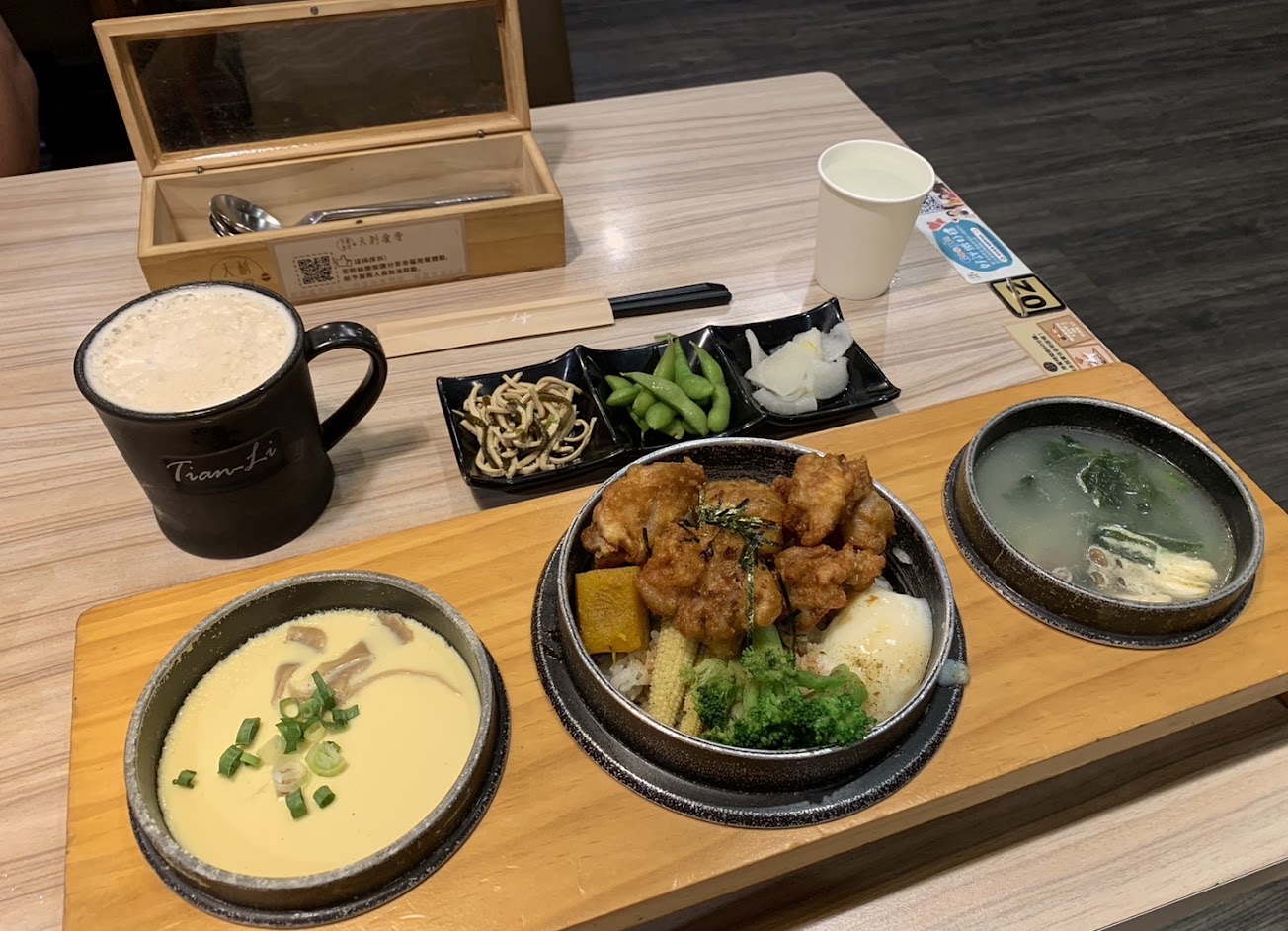 無論是吃飯吃麵吃鍋物,店家都有提供~ 當天和友人點了豆腐鍋及烤咖喱,餐點份量對女生來說偏多,蒸蛋滑嫩好吃! 豆漿豆腐鍋料很豐富,湯頭豆香味濃郁,整體來說蠻好吃的! 不過小菜的海帶吃到最後有點死鹹,其餘都算完美!