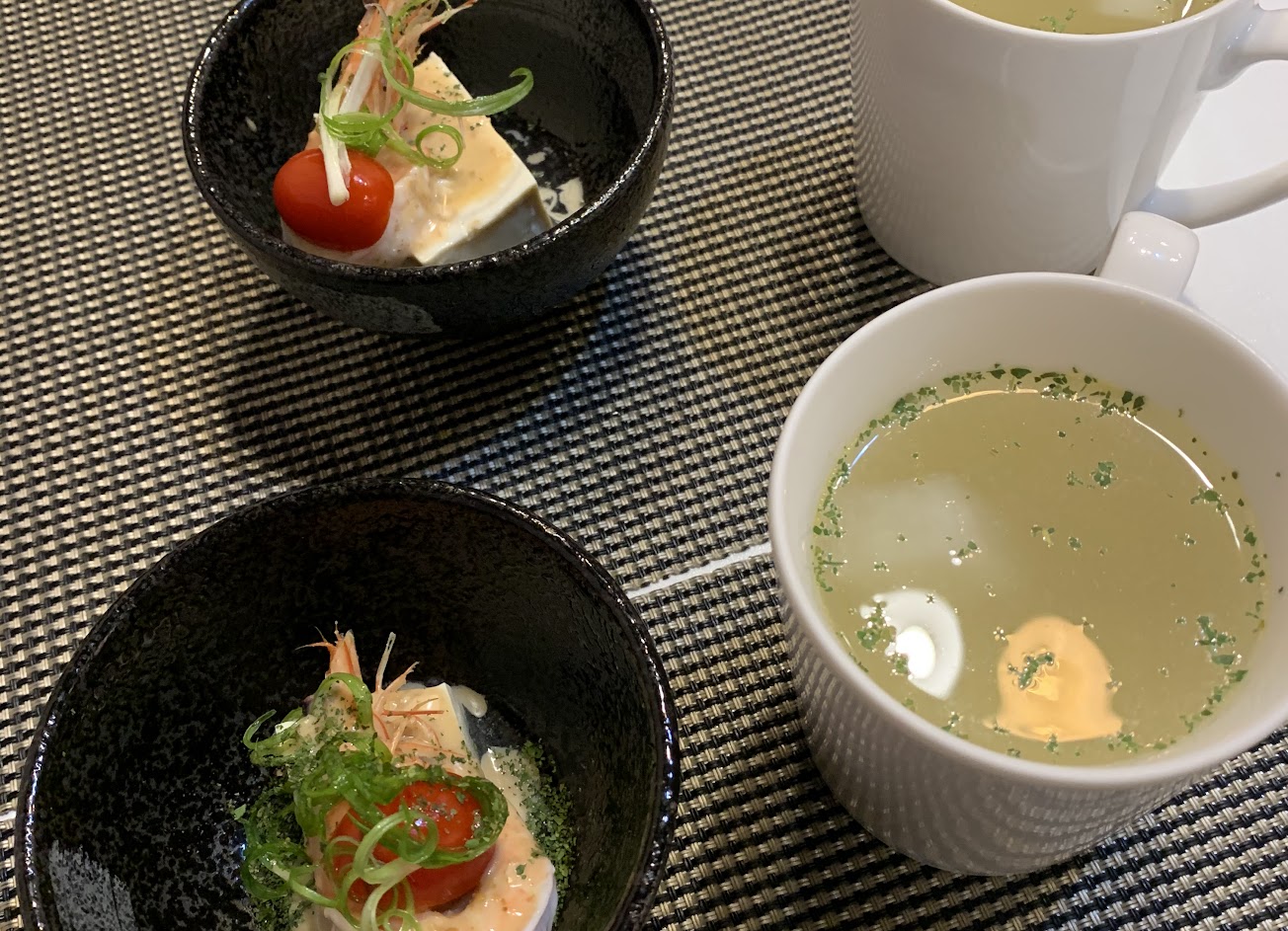 湯應該是湯粉包泡的不好喝,海帶湯的味道跟“味王紫菜湯一模一樣“,咖哩跟甜點還可以,但不值得那個價錢.