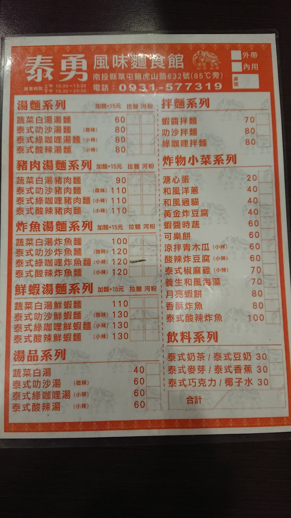 草屯虎山路上的泰式湯頭麵食 有點像”大心” 味道蠻夠的,好吃!