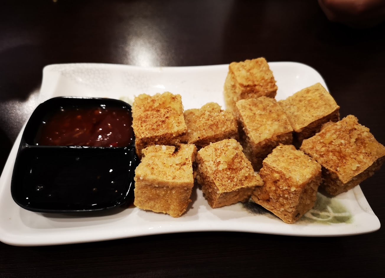 炸魚酥脆配醬料非常好吃,酸辣炸豆腐即使最後吃的時候豆腐底部有吸到醬汁,還是很好吃。