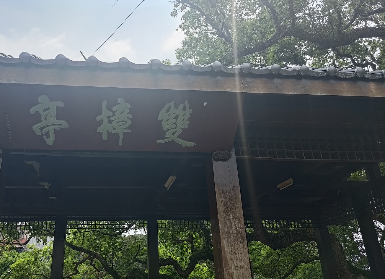 兩棵老樟樹旁建有一休憩涼亭,腹地狹小,停車要到旁邊的大廟埕。