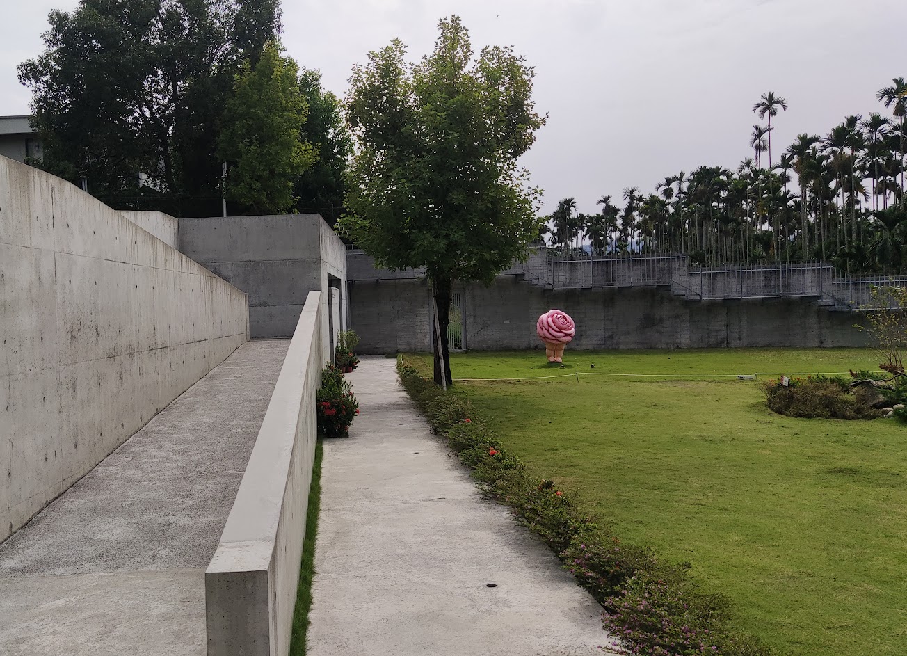 主題建築為清水模,2016年台灣建築首獎,清水牆、廊道、水池、露台,走在裡面就像在藝術品當中漫步。
