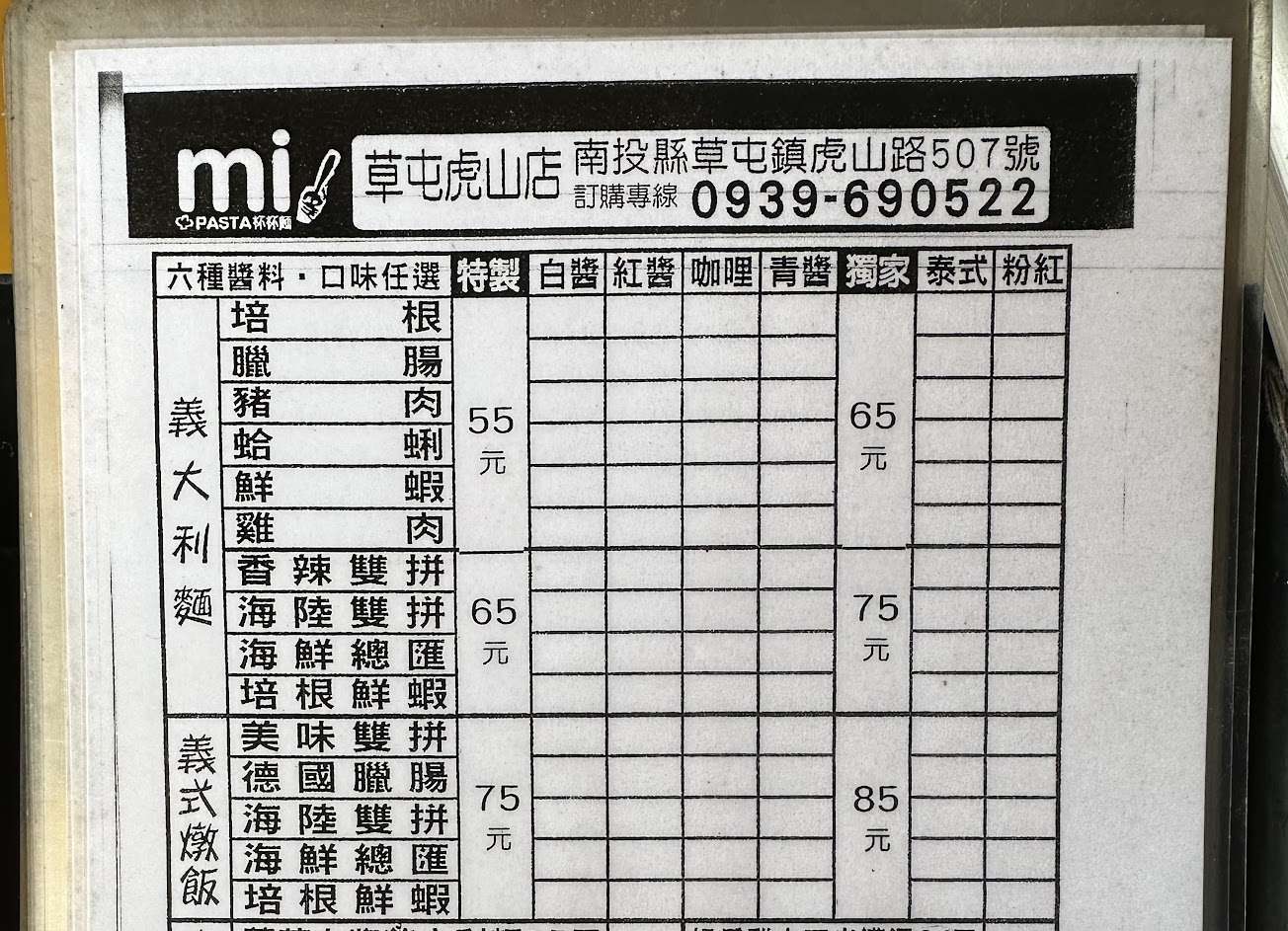 2024最新在地推薦餐廳的菜單_mi pasta 杯杯麵的菜單、圖片