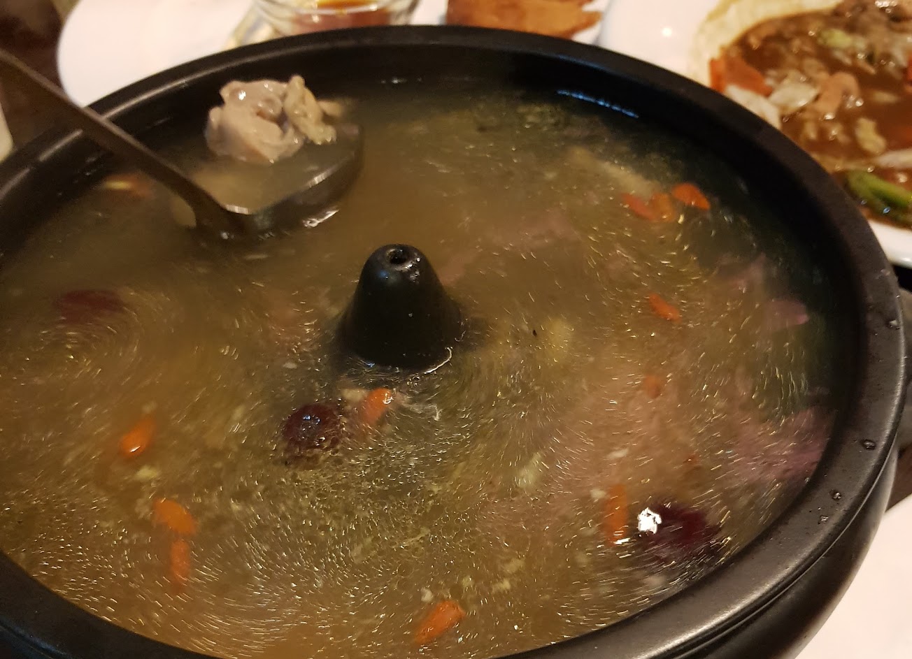 然後因為桌子太擠 還要我堂哥們接力上菜… 之後還要自己收盤.. 後來快吃完了 才在移桌 服務態度真的有待改進 我堂哥還說 讓一個高齡92歲的老人 等那麼久才用餐 蠻過分的 不過菜色還不錯啦 雞肉 打拋豬 月亮蝦餅都很好吃… 然後以為沒菜了. 等了10幾分鐘了大家都起身要走了才說還有4道沒上… 扯