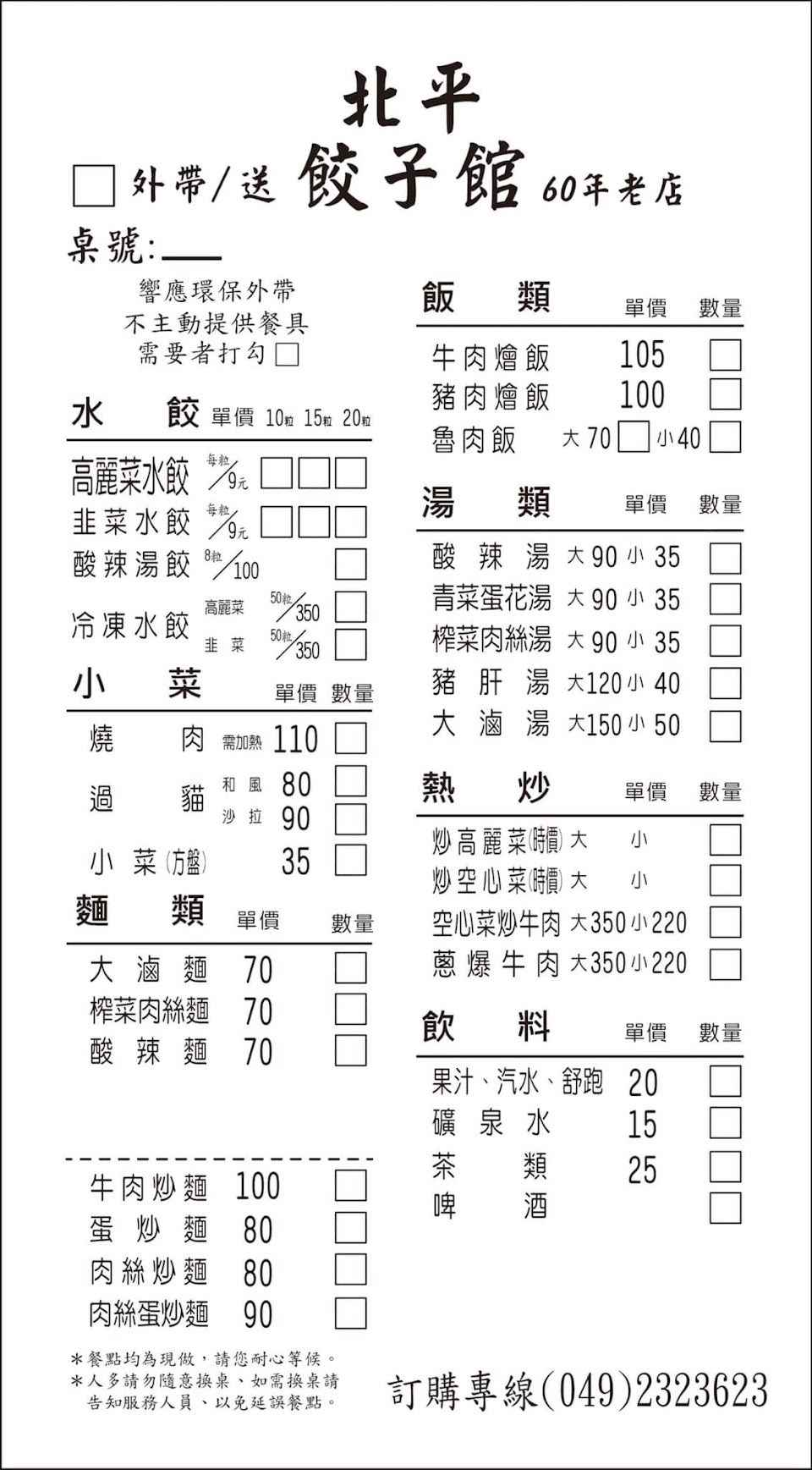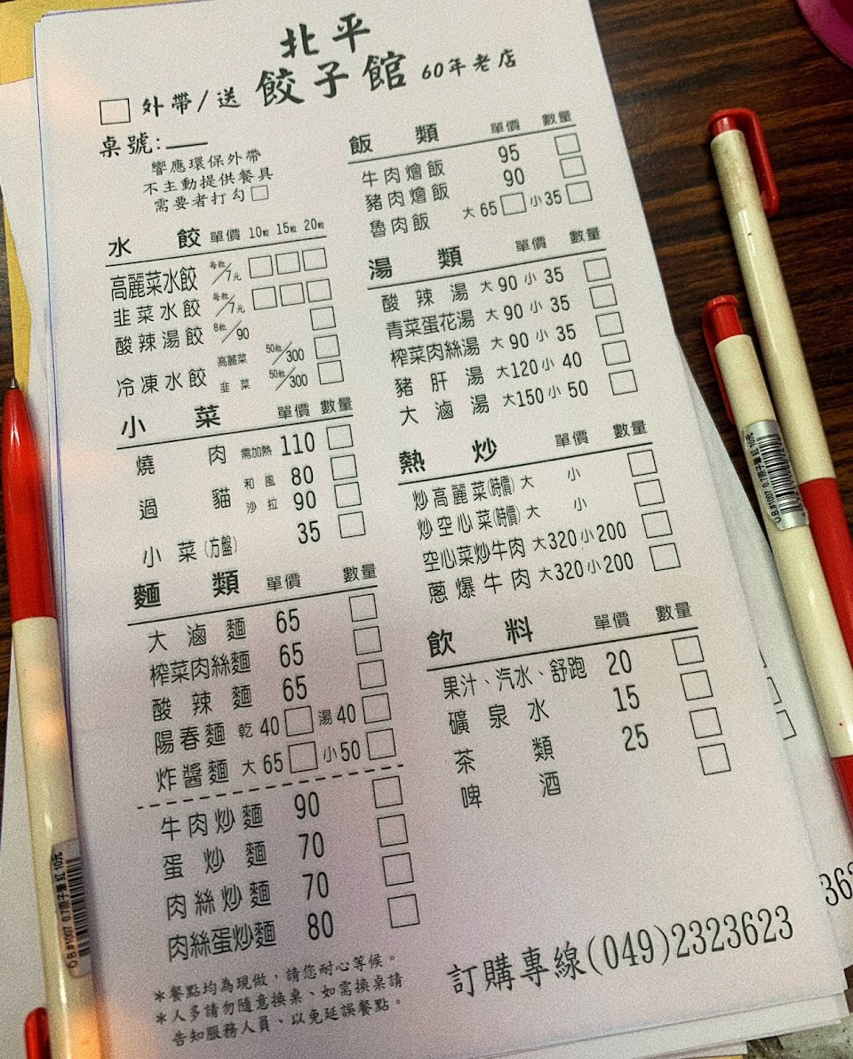 2024最新在地推薦餐廳的菜單_北平餃子館-草屯60年老店的菜單、圖片