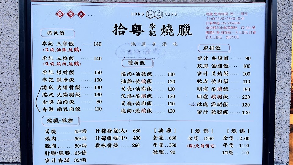 2024最新在地推薦餐廳的菜單_李記拾粵港式燒臘(拾粤茶餐館-預約制)的菜單、圖片