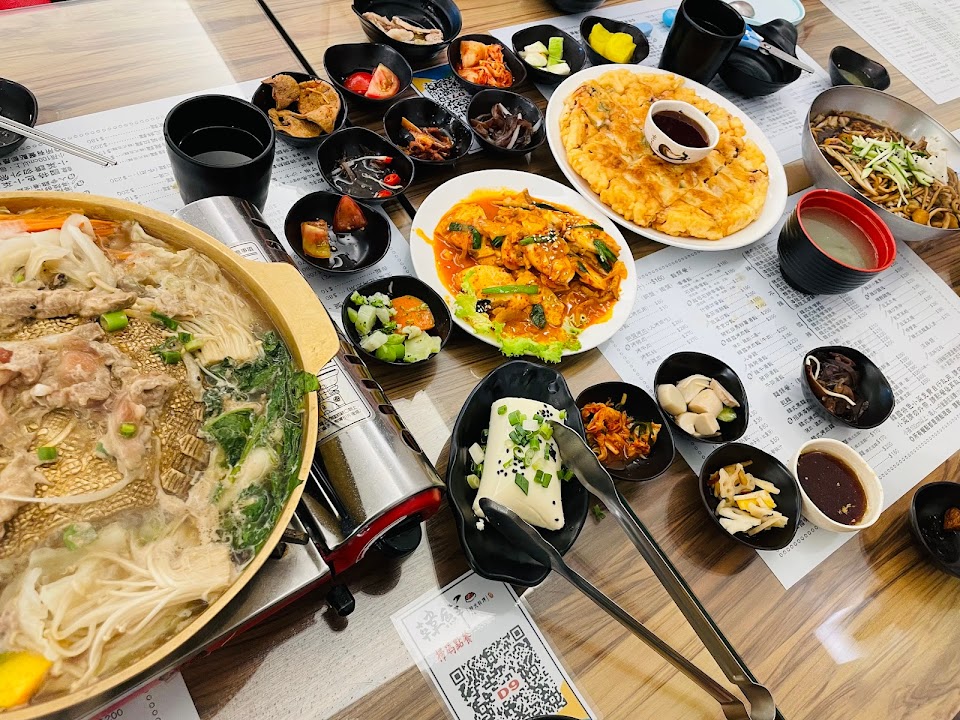 豆腐鍋非常好吃,餐點很大份,裏面的料超級多,海鮮煎餅也很紮實,小菜可以無限制享用!