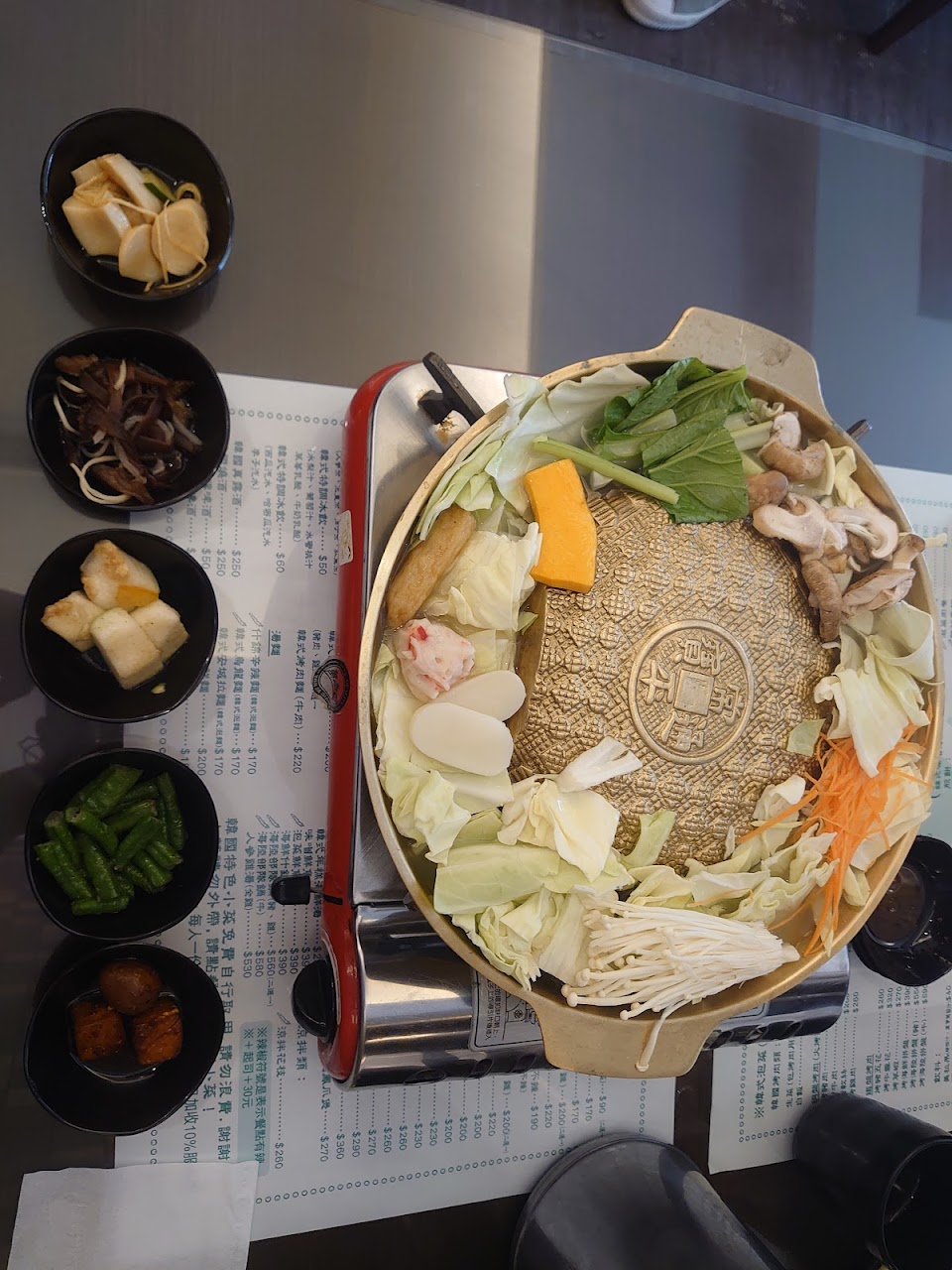 豬肉豆腐鍋, 免費自取小菜, 海鮮煎餅, 銅盤烤牛肉