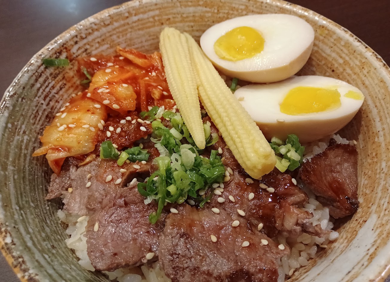牛排丼吃了無數次,肉質Q彈,搭配泡菜絕配,還附一顆糖心蛋外加兩條玉米筍!!!