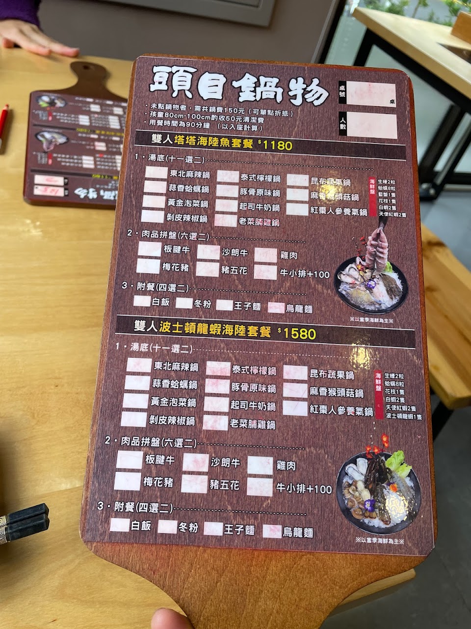 菜單上只有寫未點鍋者需付共鍋費,沒有寫一桌只能一個人共鍋,標示不清楚,我們都畫完單去結帳才說,差評