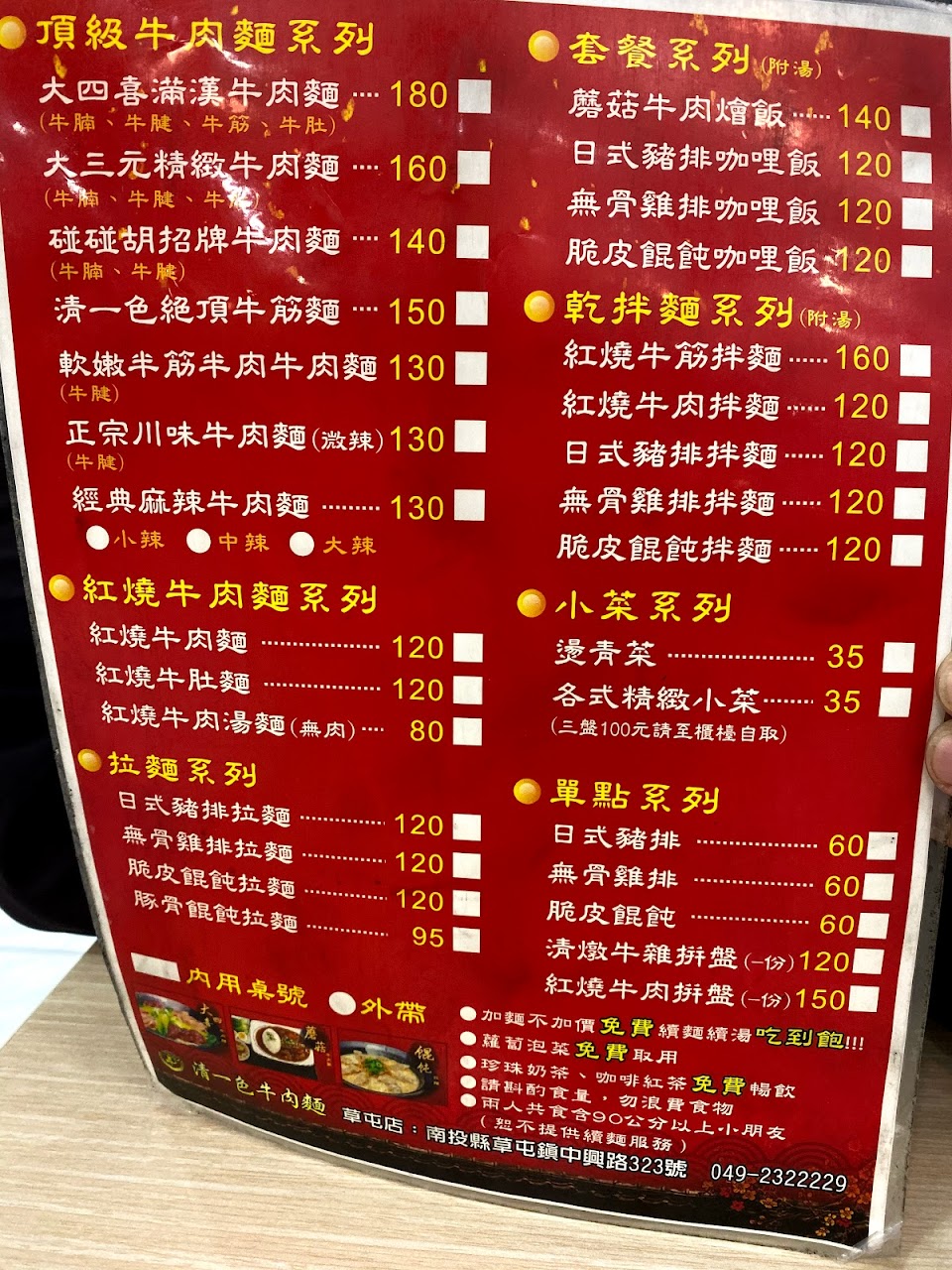 2024最新在地推薦餐廳的菜單_清一色牛肉麵-草屯店的菜單、圖片