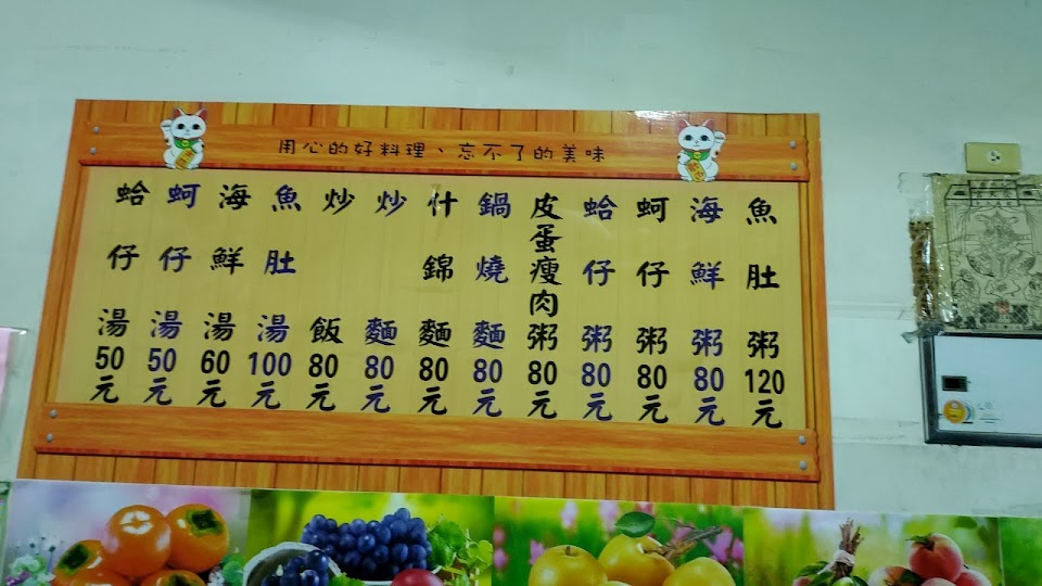 開很久 而且超好吃 是當地人常買的店?最常點的就是鍋燒麵跟虱目魚肚粥吧!麵料多的沒話說還會附贈一包他們特製的菜脯,虱目魚粥放了一整片魚肚還有蚵仔? …