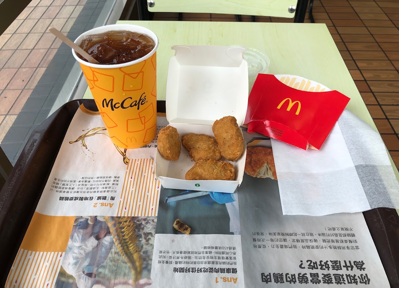 只要騎機車去日月潭 回程就會經過這家麥當勞 地理位置很好 偶爾停下來補給吃份套餐 對面那條路就是等等要回家的路線 邊吃邊討論還有幾公里到家 等等還要經過斗六 梅山 番路 中埔 白河 東山 楠西 玉井 南化 內門 旗山 大樹 大寮 騎車最快樂的事 是能忘記煩惱 享受自由 騎車最累的事 是大熱天在紅燈下讀秒 遵守規則 每次只要來回超過400公里 就要設鬧鐘 早上5點提前出門 (白牌150cc) 吃完漢堡 把垃圾跟餐盤 歸位 整理一下疲憊心情 往回家的路上 快樂人生 不是擁有的多 餐點:5 服務:5 氣氛:5