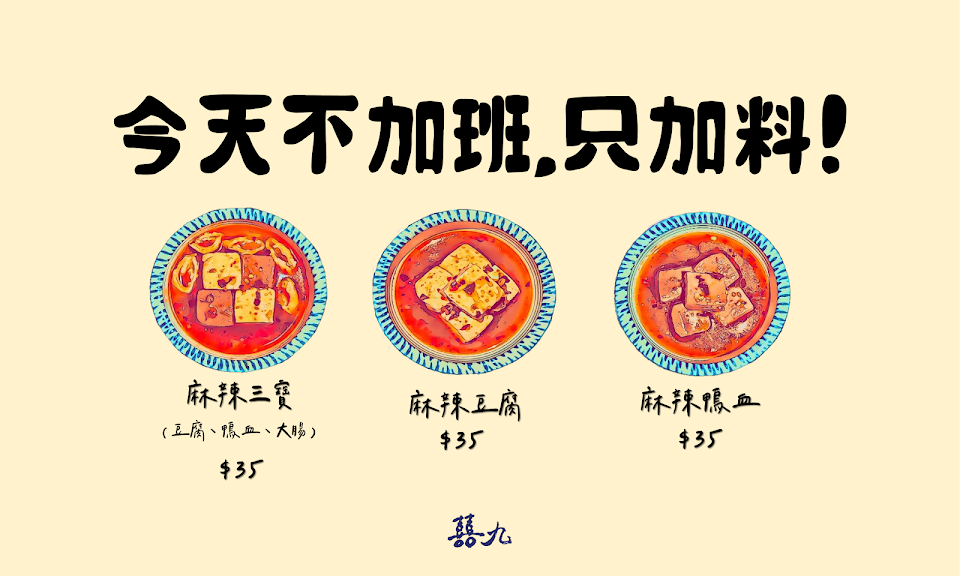 囍九麻辣燙 | 也有不辣 · 有湯有乾 · 平價 · 熱門 · 特色 · 隱藏版美食 · 宵夜 · 晚餐