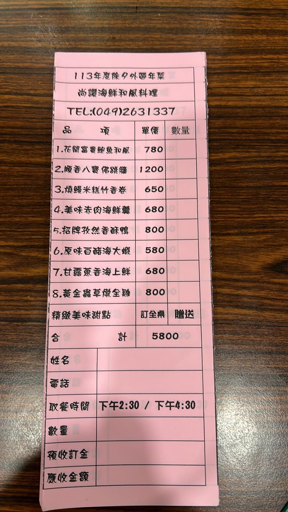 過年竹山餐廳沒幾家,只好來這家聚餐,8個人規定要點10人份菜單,不能變更,都是一些便宜的菜,例如肉羹、幾乎只有豬肉芋頭的佛跳牆、好瘦的雞湯、小管粉絲湯等,這樣要6000元,在台北恐怕3000元沒人吃。不推薦。