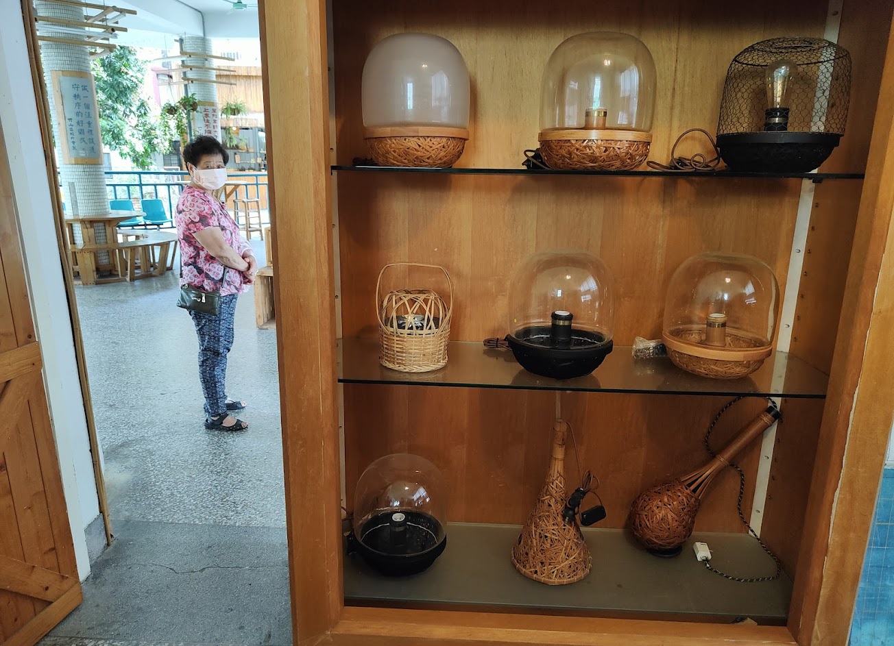 位置在公車站樓上,竹編裝置的裝潢,將地方性的特色給展示出來,有茶葉以及竹子。