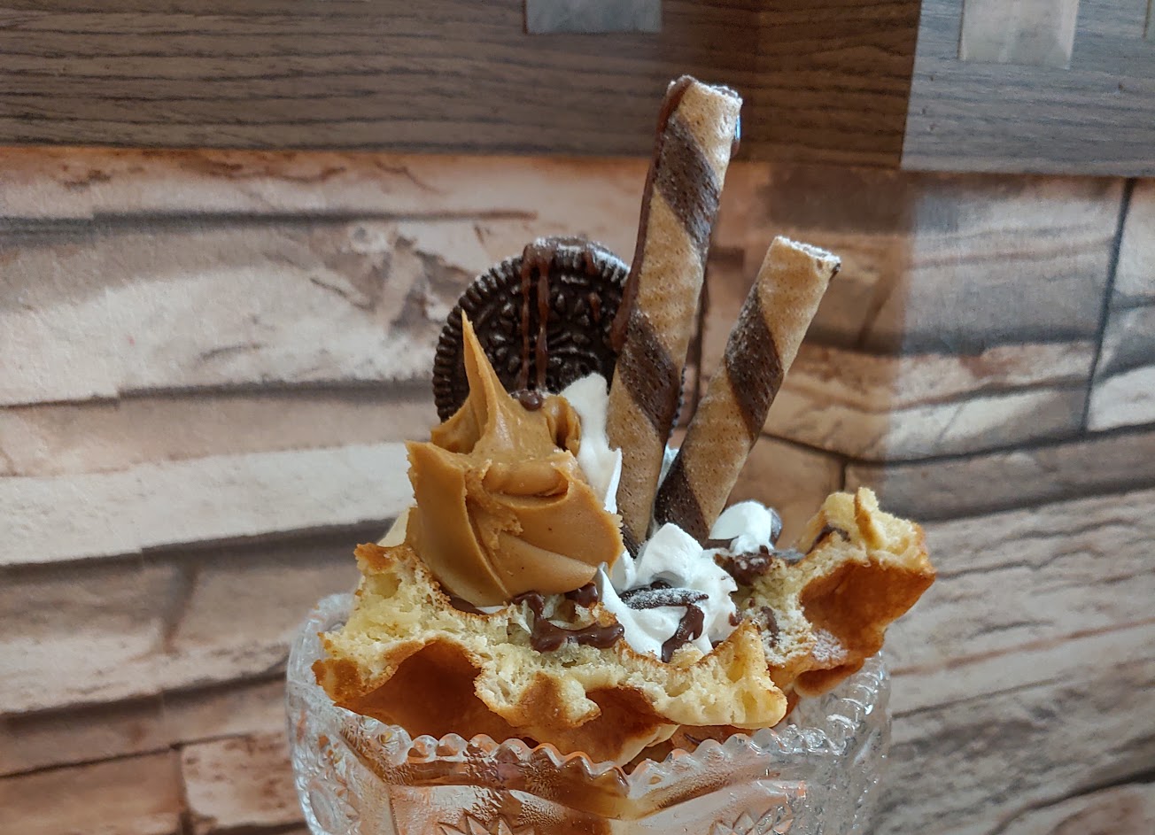 提供很多桌遊及拍照用具,鬆餅與霜淇淋都美味。