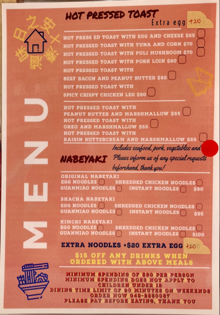 熱壓吐司正常,有低消,飲品普通,整體普通。