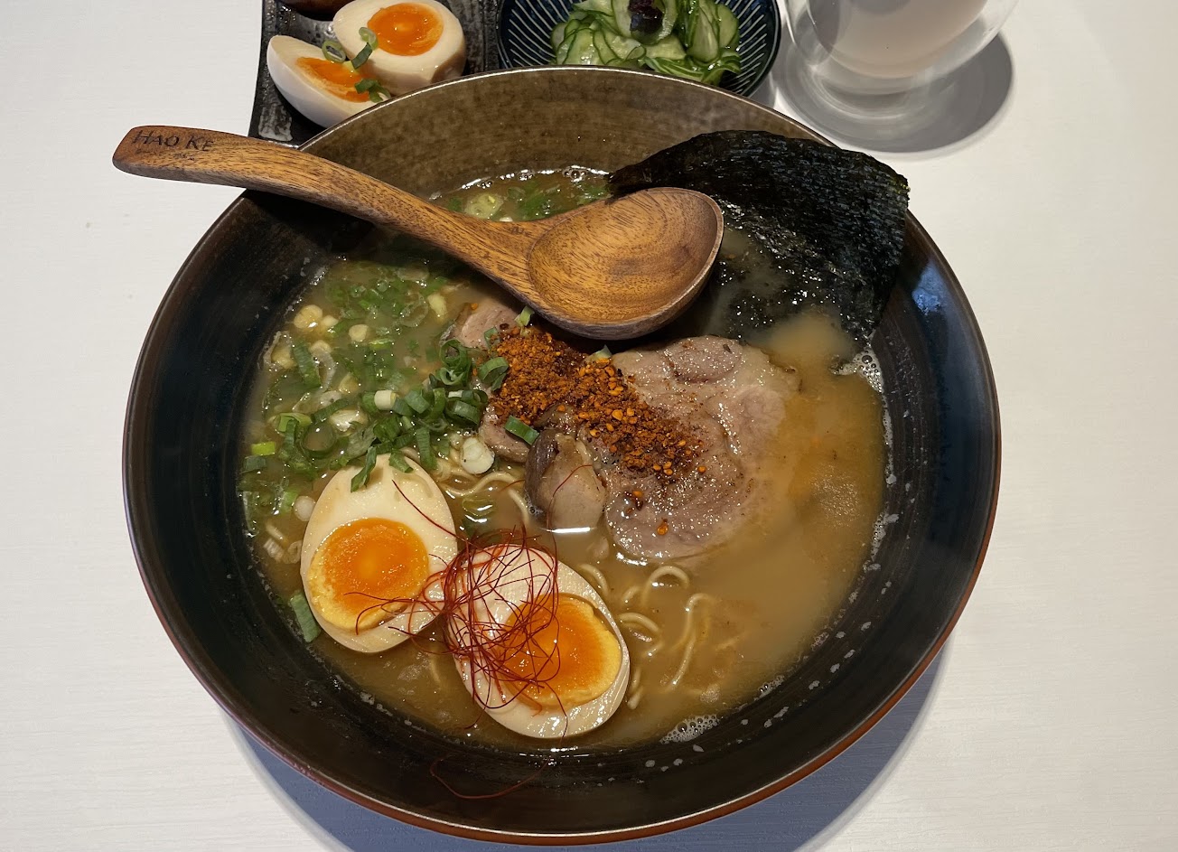 抱有很大期待,吃完有點失望的拉麵店⋯用手機點餐; 單價跟網路上查到的漲了一些,味道聞起來炙燒很香,但口味不是那麼適合我⋯湯頭看起來濃郁但喝起來沒有融合在一起,鹹味偏重也很單獨,不過小菜很可以點,小菜單價不高30-50元左右,只有嗶嗶啵啵$130(這個不錯吃),蠻可惜的,湯頭的味道沒有很協調。