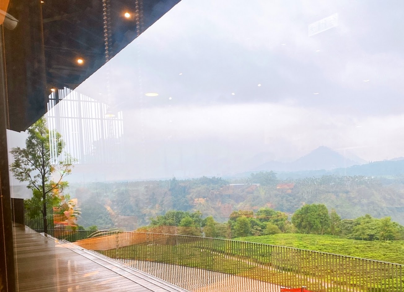 由停車場要走一小段上坡路,登高的景色寬闊怡人!莊園內的大片落地窗,引入藍天綠景,置身當中,喝咖啡品茶,配個甘茶蛋(真的好吃),讓人有悠閒的幸福感….