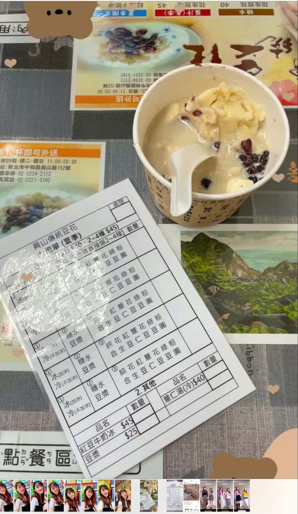 點了一個豆花粉圓,小朋友不吃豆花只要粉圓,不能不加豆花.然後吃的時候只能挑粉圓起來吃