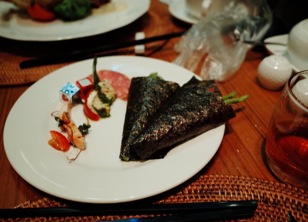餐點的話真的應該可以說是我吃過最難吃的素食,一個人套餐1500+10%的價位,雖然說是養生餐,但我相信養生也能很美味,就算是原型食物也能很甘甜,但說真的吃到我不知道放進嘴裡的是什麼東西,所有的食物味道都不契合。但擺盤還是可以的,就只能拍拍照。讓手機用餐。