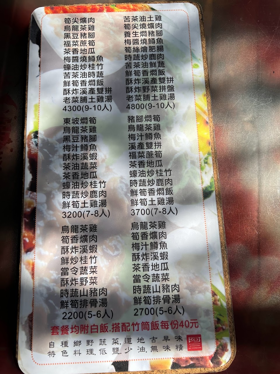 很多搭配竹筍、茶葉烹調的料理,像是苦茶炸地瓜、烏龍茶雞、竹筍雞湯等等,食材很新鮮不會太鹹太油膩