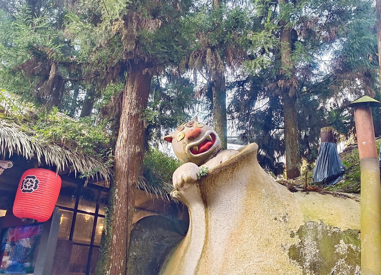 日式建築及鳥居造景,充滿了濃濃的日式氛圍,裡面的麵包店像是咬人貓麵包、枯麻燒、咬人貓蛋塔都是來這裡必吃。另外像是春竹哈吉開運餅、咬人貓酥餅也都是妖怪村必買的伴手禮,溪頭妖怪村假日還會有特別的表演好欣賞。