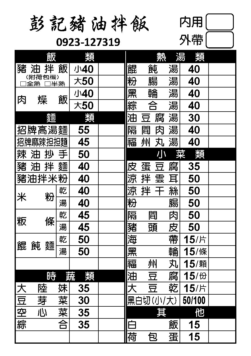 2024最新在地推薦餐廳的菜單_彭記 豬油拌飯(停止營業 老闆澳洲打工度假中 下次見)的菜單、圖片