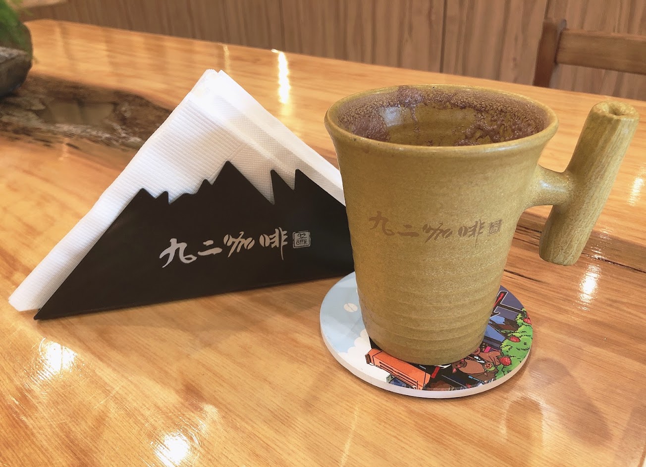 原為國姓鄉農會改建的九二咖啡故事館 內裝全由豪華的原木改造而成 不知道為什麼農會這麼有錢 是因為盈利變成私人了嗎? 有伴手禮區,我買了一盒手沖蜜咖啡 也有內用區,品嚐了一杯蜜咖啡 確實還不錯,不過同樣價位可以更好 沒有到達同價位的水準 這就見仁見智了