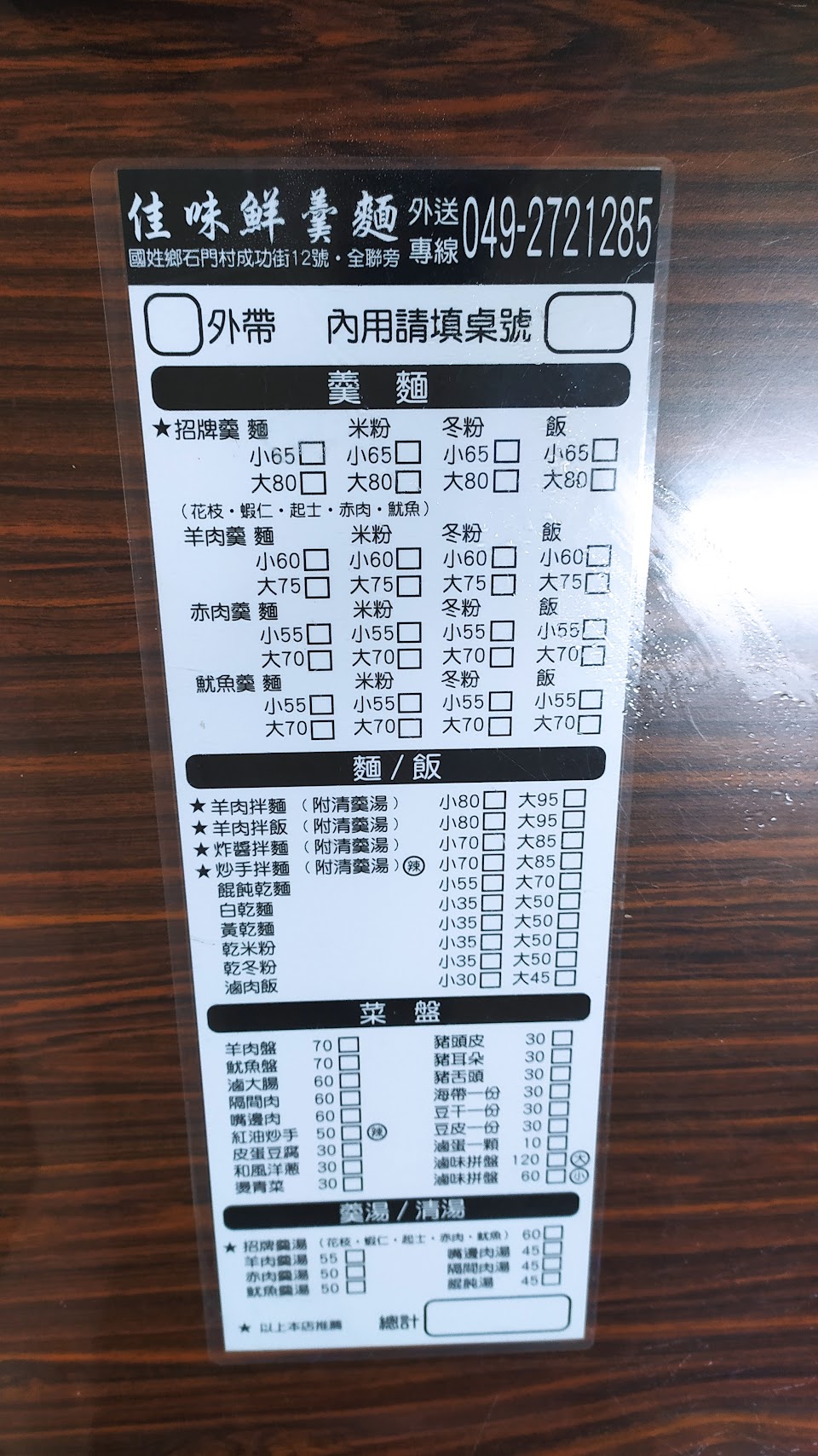 2024最新在地推薦餐廳的菜單_(原京城)佳味鮮羹麵專家(國姓店)的菜單、圖片