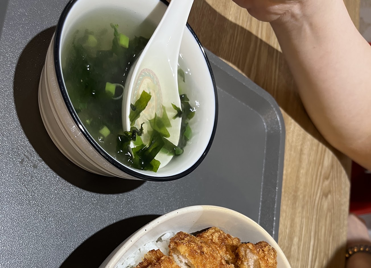 價格剛剛好,炸豬排咖哩飯很好吃,豬排炸得很酥脆,咖哩的五香味有點重,請自行斟酌。