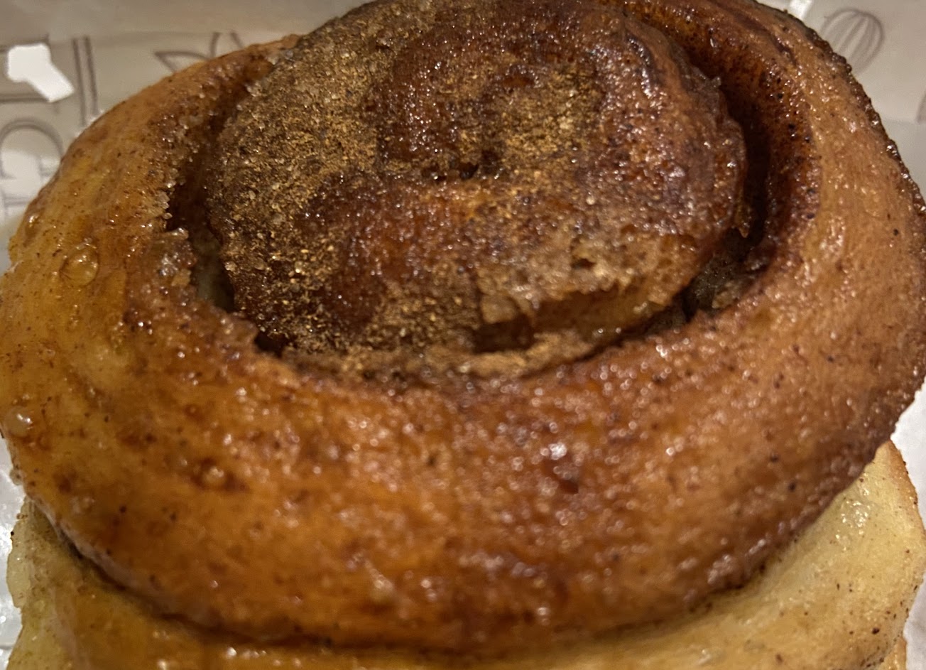 肉桂捲:內用一樣會加熱,外表微酥脆,自製的海鹽焦糖醬好吃。