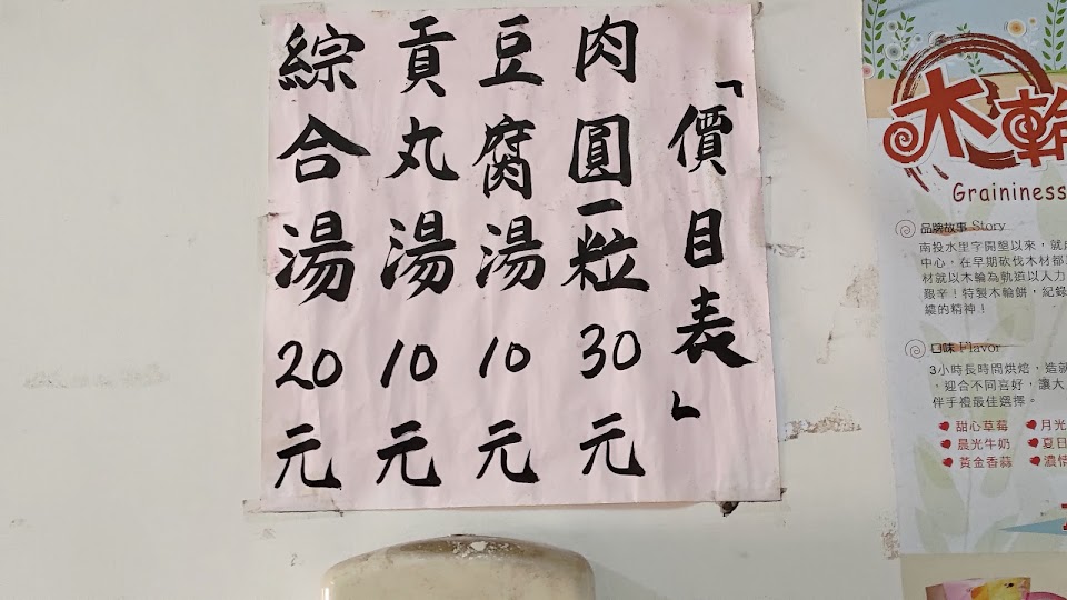 肉圓30大洋 魚丸湯、豆腐湯各10大洋 綜合湯(魚丸+豆腐)20大洋 名副其實的銅板美食
